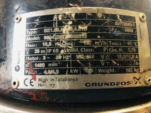Grundfos SE1.80.80.4.51D Submersible Sewage Pump – 4.9 kW | 20m Head | 3 Phase